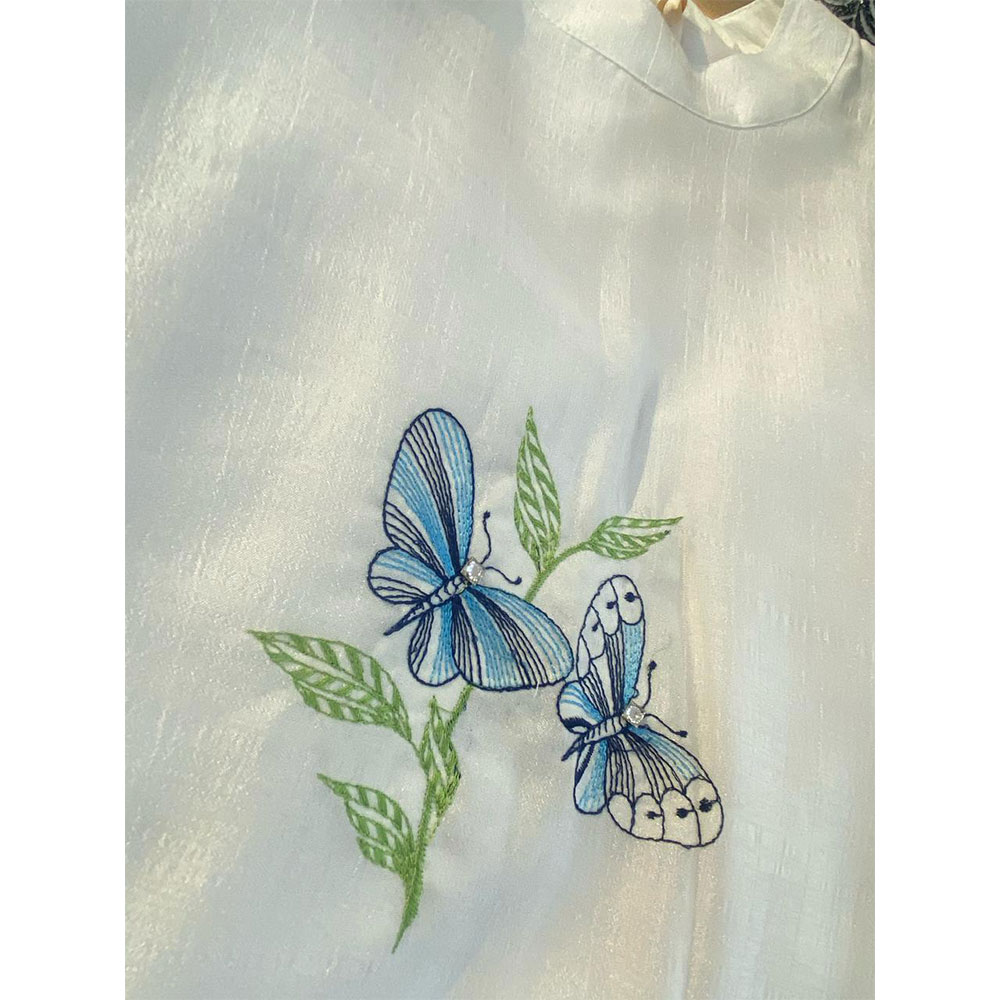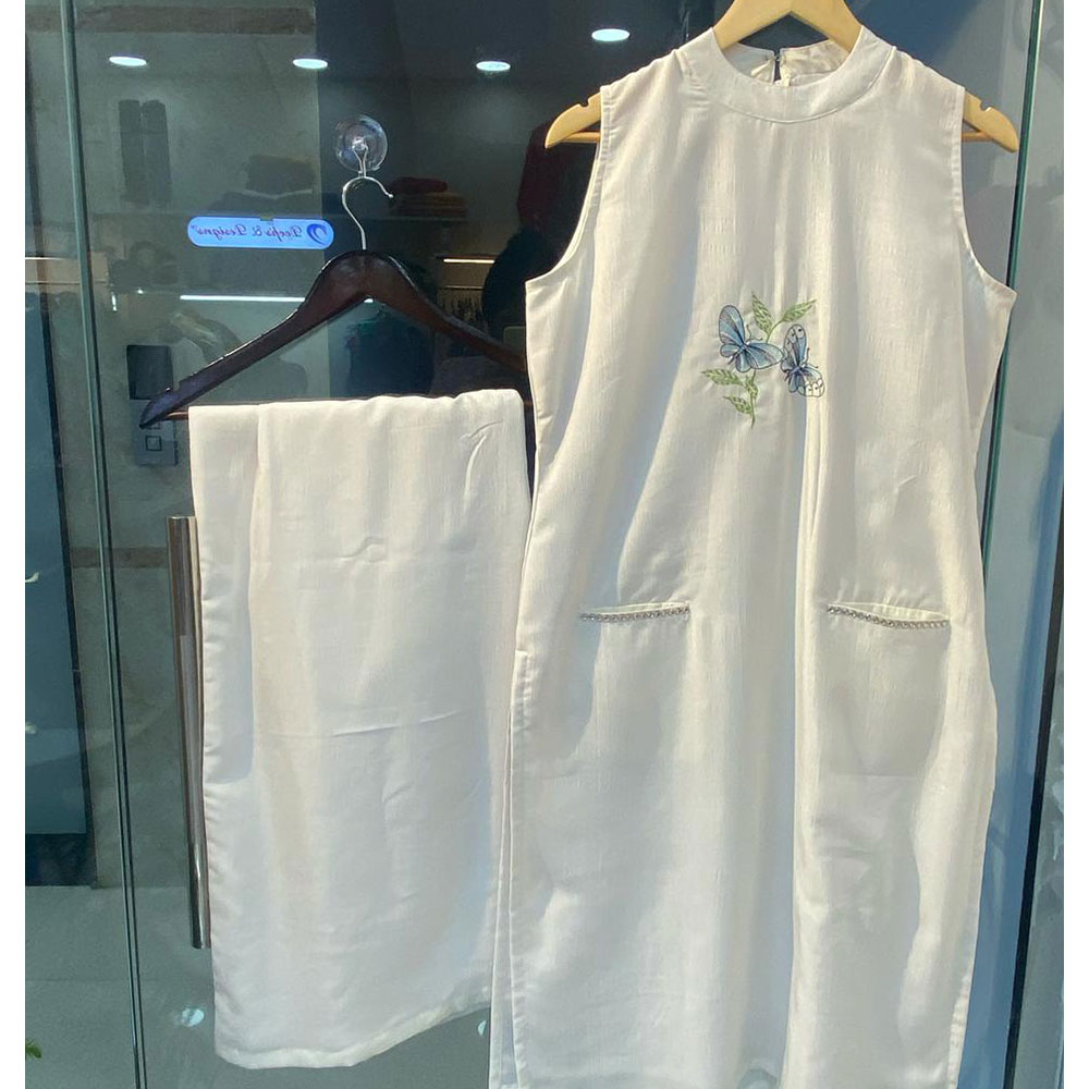White Butterfly Computerized Embroidered Kurta With Bottom