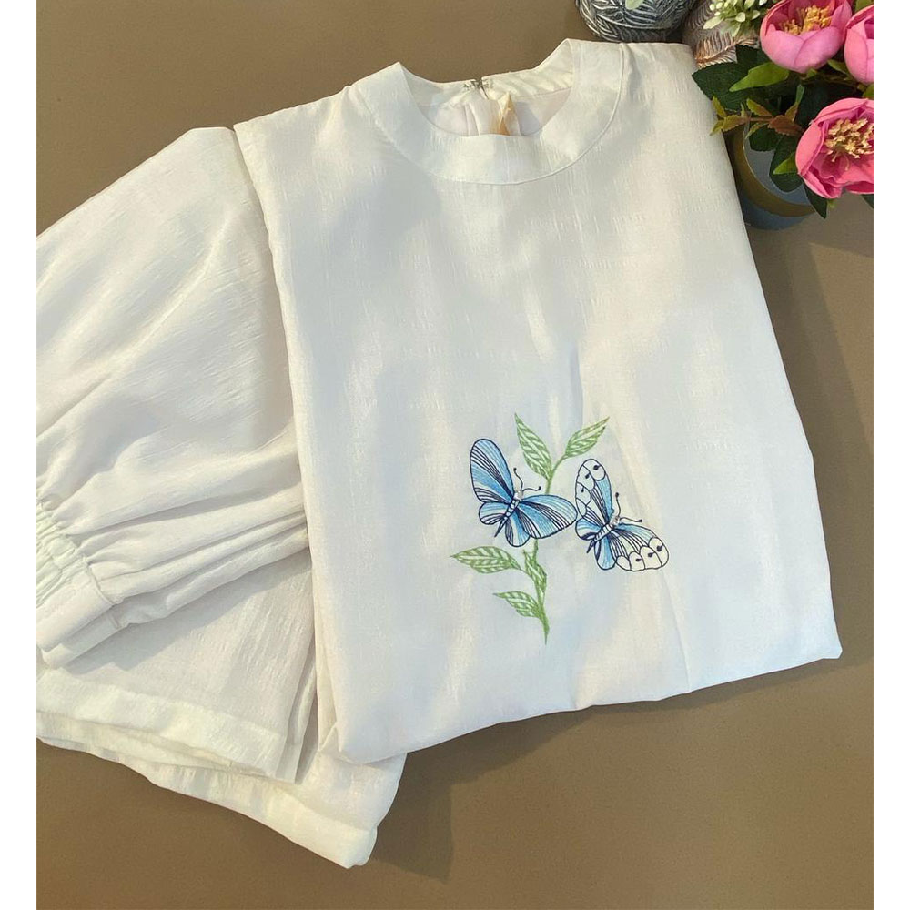 • White Butterfly Computerized Embroidered Kurta With Bottom