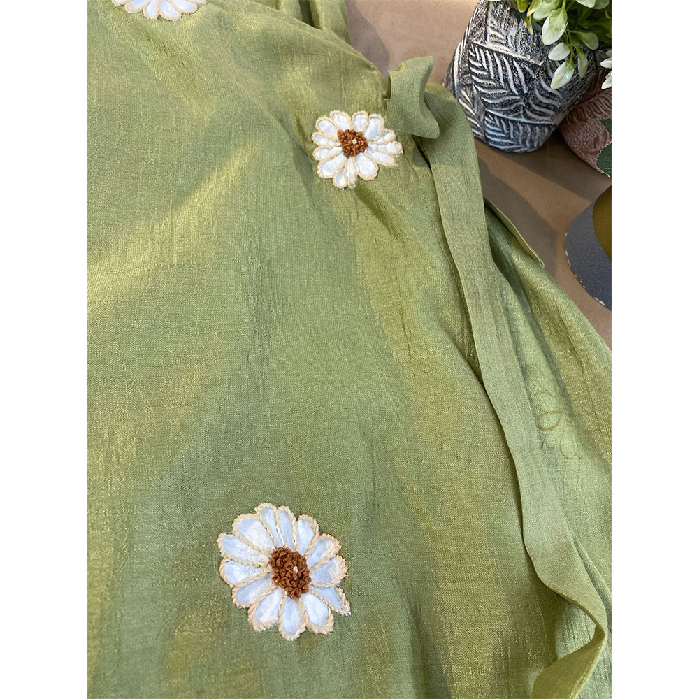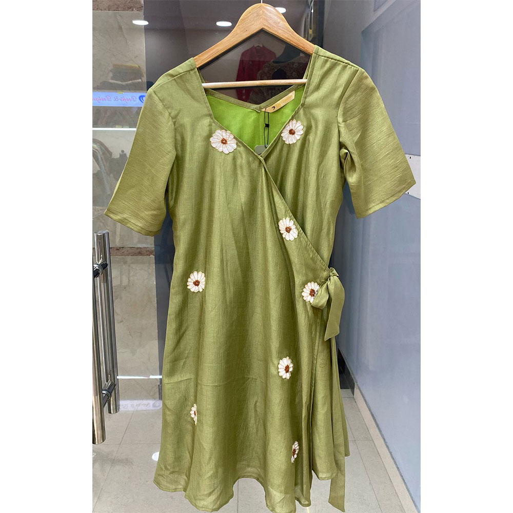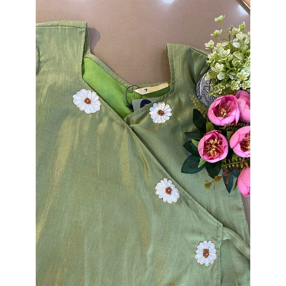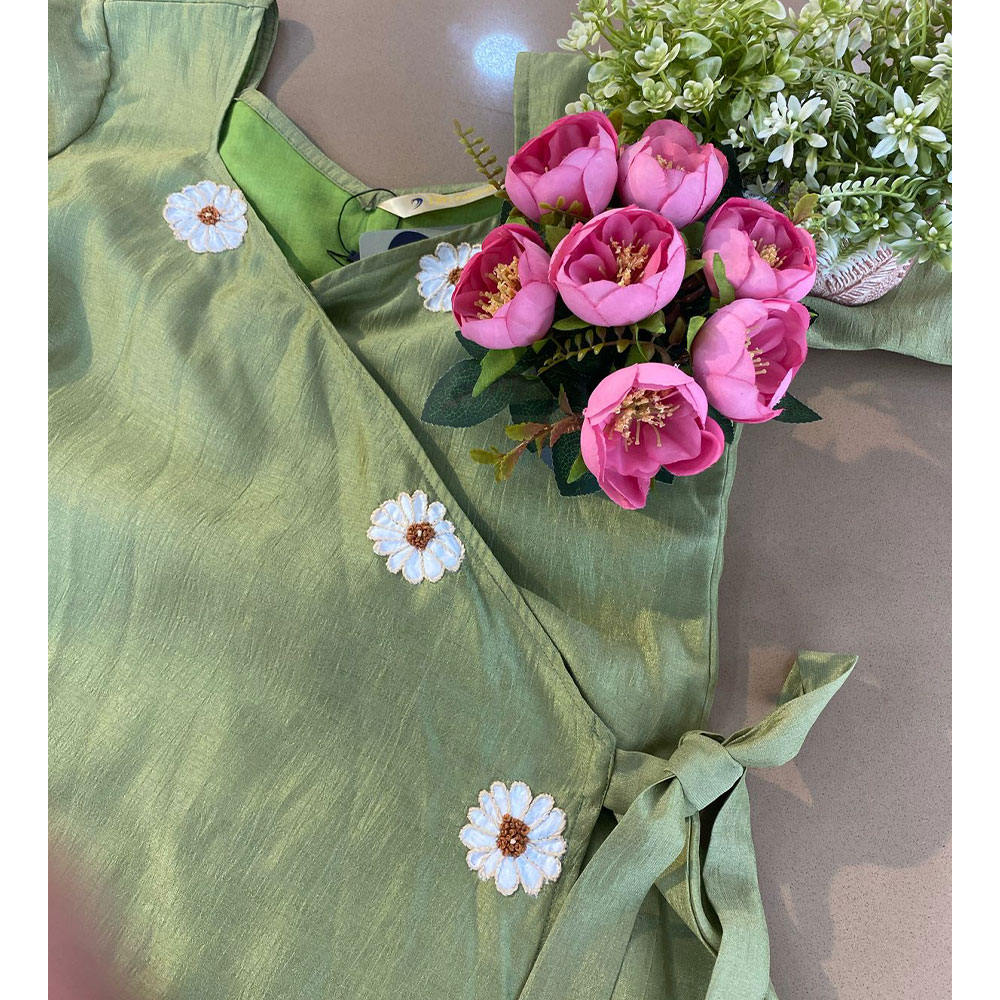 - Olive Green Hand Embroidered wrap Style Kurta
