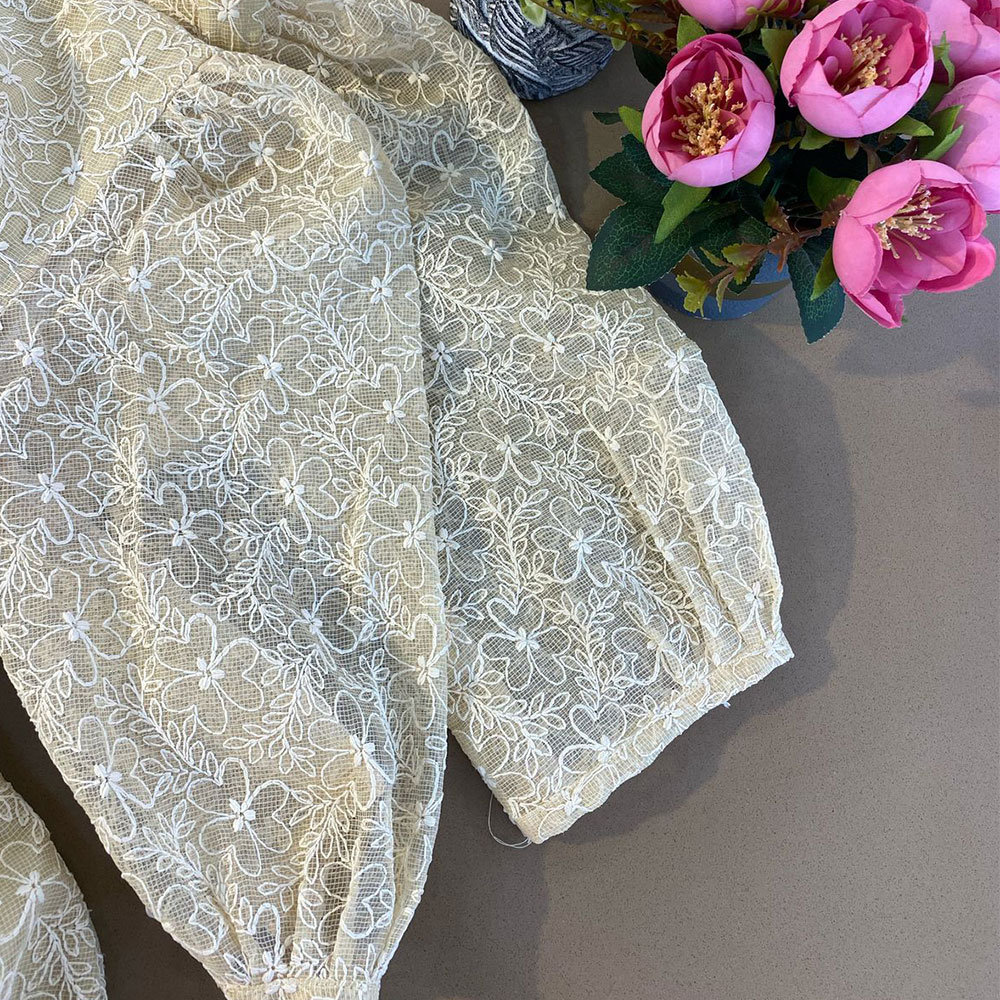 For best results, dry clean only. If needed, gently hand wash in cold water using a mild detergent. Do not soak, wring, or bleach. Lay flat to dry in the shade, and steam or iron on low heat using a protective cloth. As this is a handcrafted piece, please treat it with elegance and care.