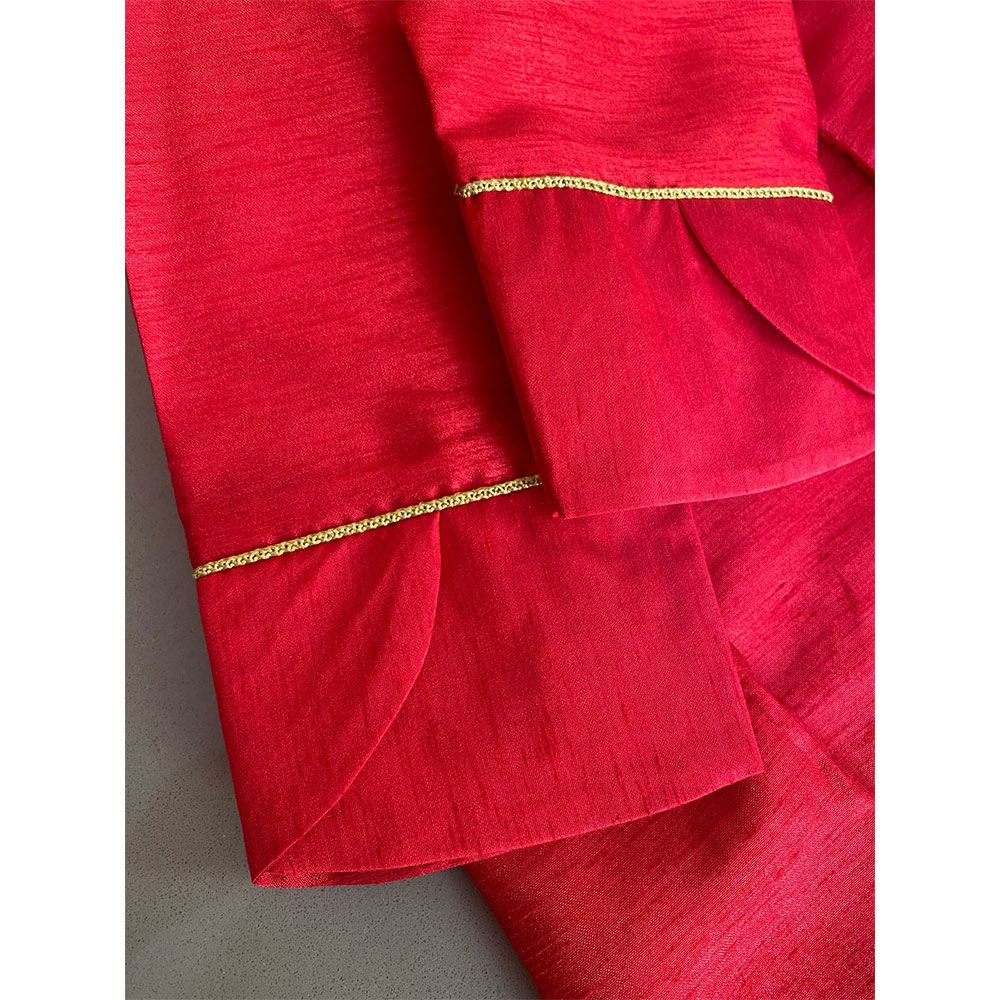 - Computerized Embroidery Work Red Kurta V-Notch Neck