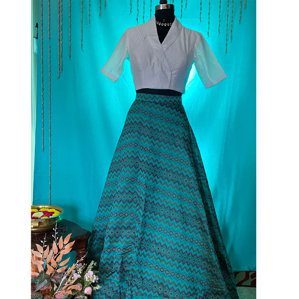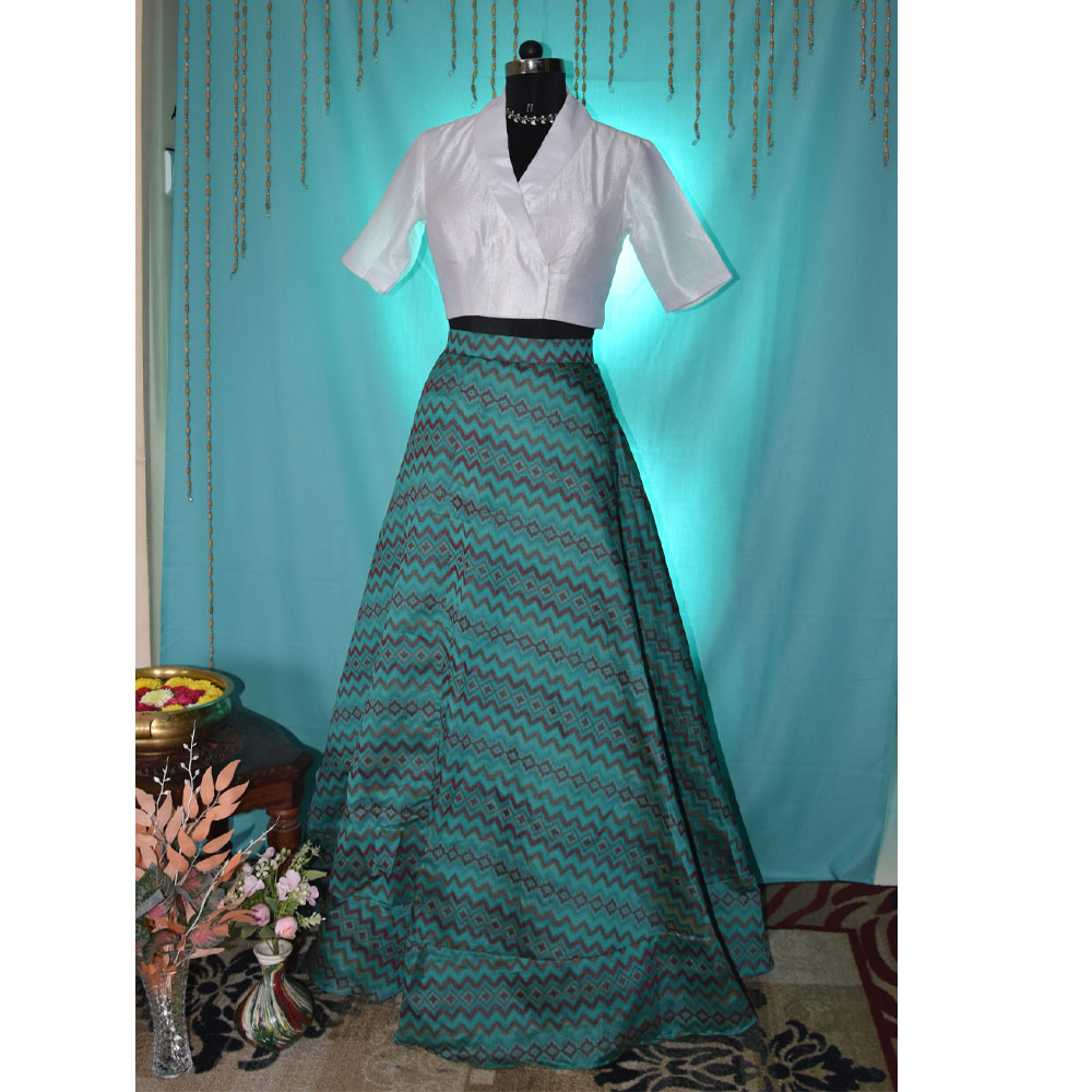 White and Green printed lehenga,