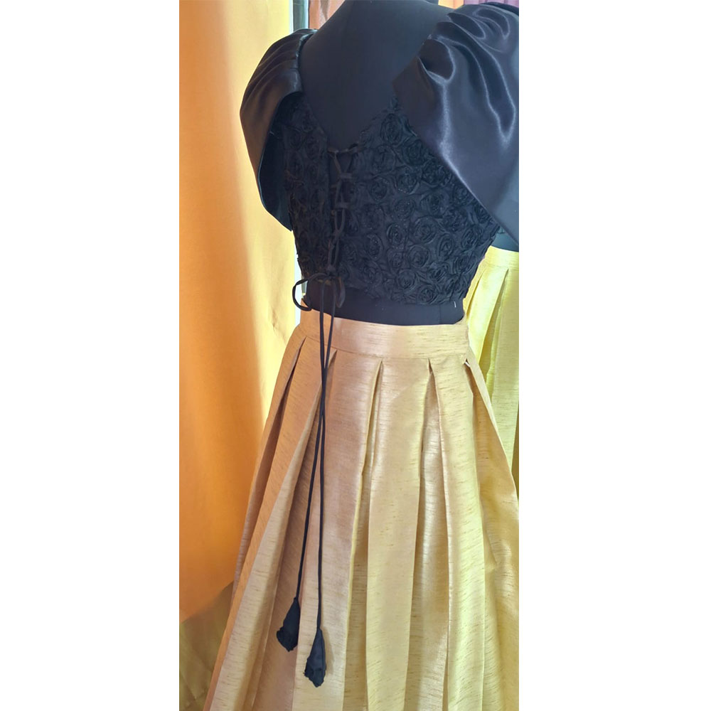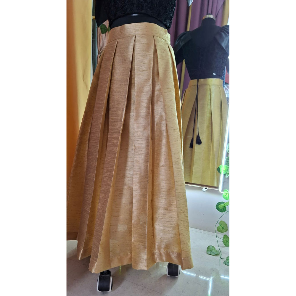 Gold-toned solid ready to wear lehenga, Box Pleated flared hem