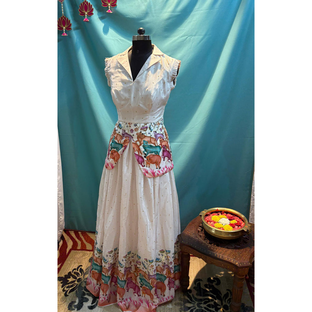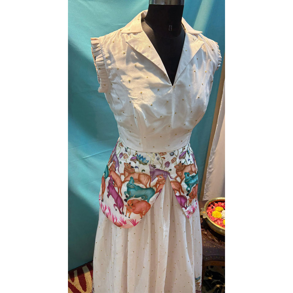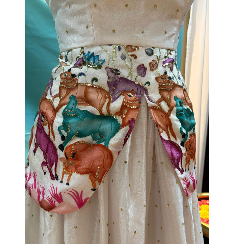 White and Orange Pichwai printed lehenga,