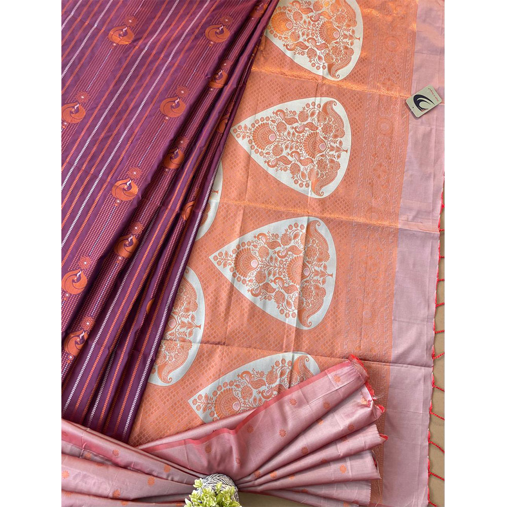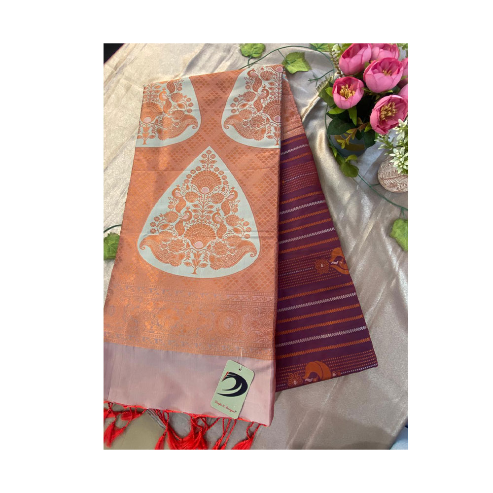 • Lite Purple With Copper orange Semi Pattu Saree