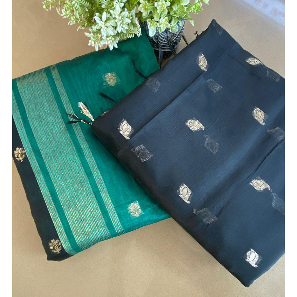 - Black Leaf Pattern Zari Design saree With Small Bordered