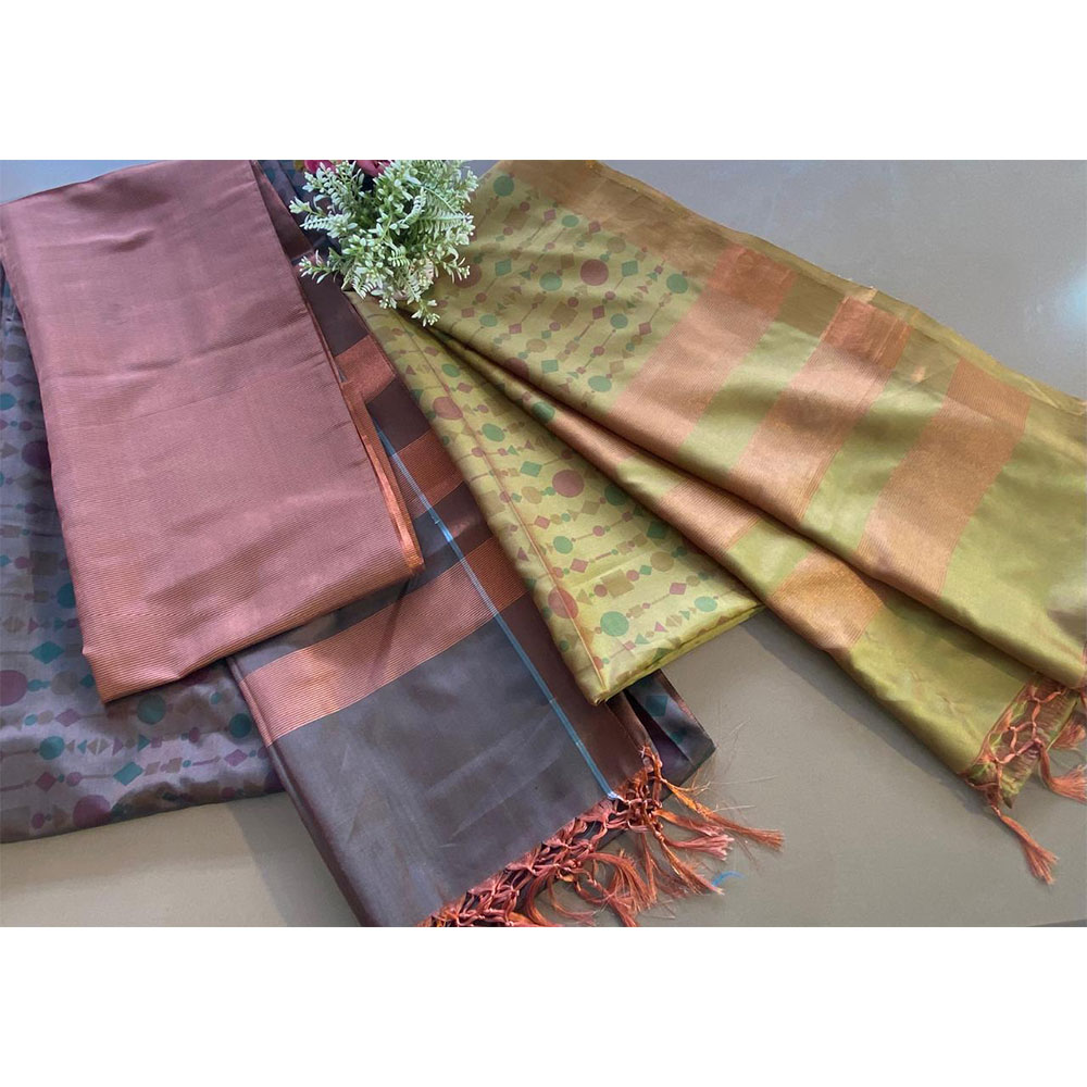 - Metallic Gold Circles With Diamond Pattern Design With Silky Bordered Tassels