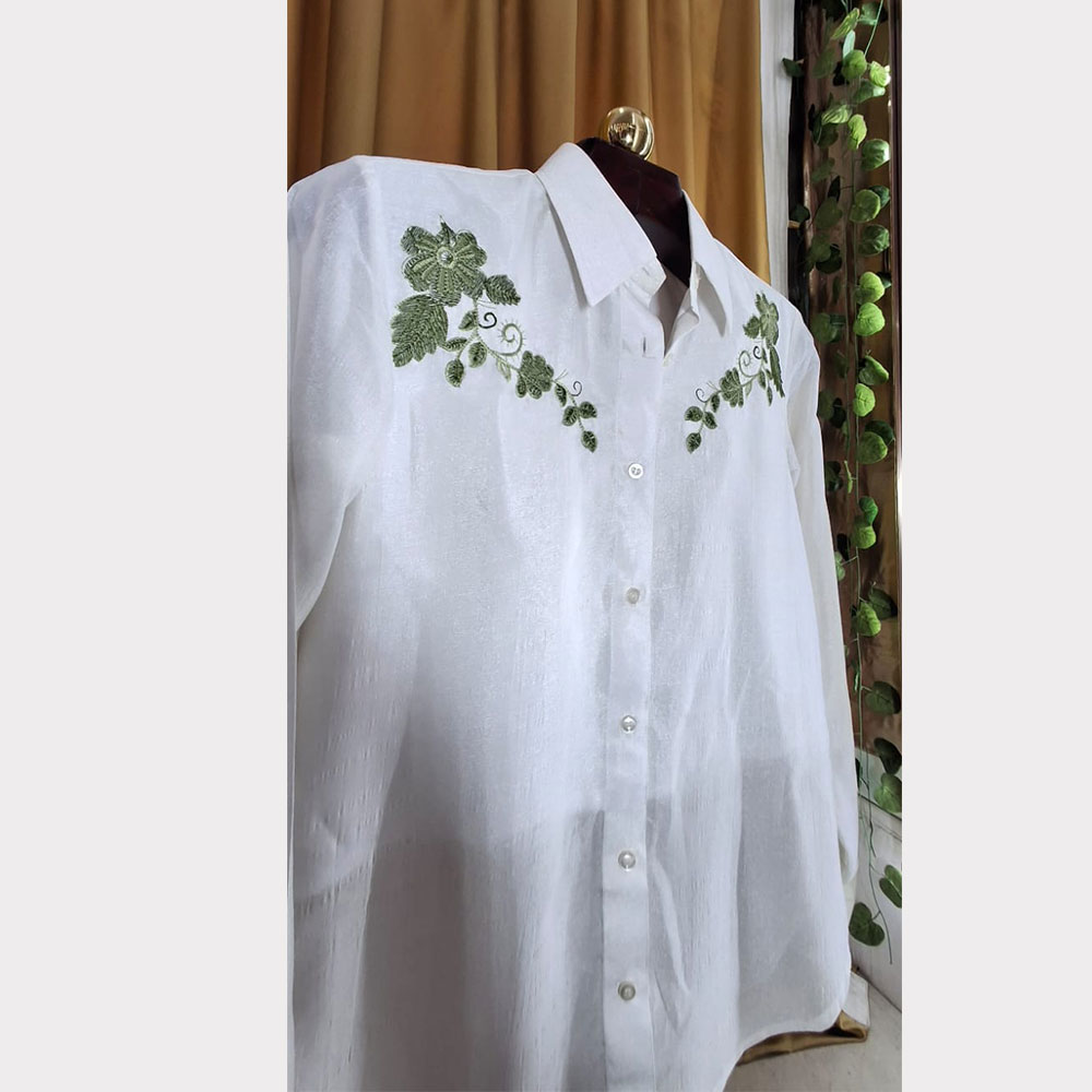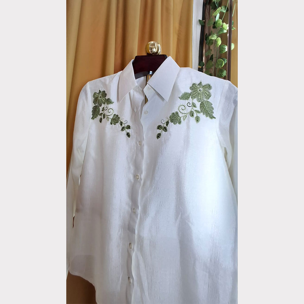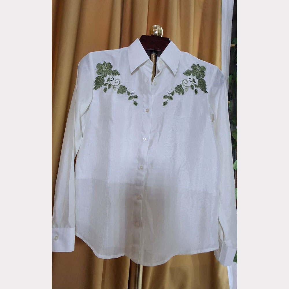 For best results, dry clean only. If needed, gently hand wash in cold water using a mild detergent. Do not soak, wring, or bleach. Lay flat to dry in the shade, and steam or iron on low heat using a protective cloth. As this is a handcrafted piece, please treat it with elegance and care.