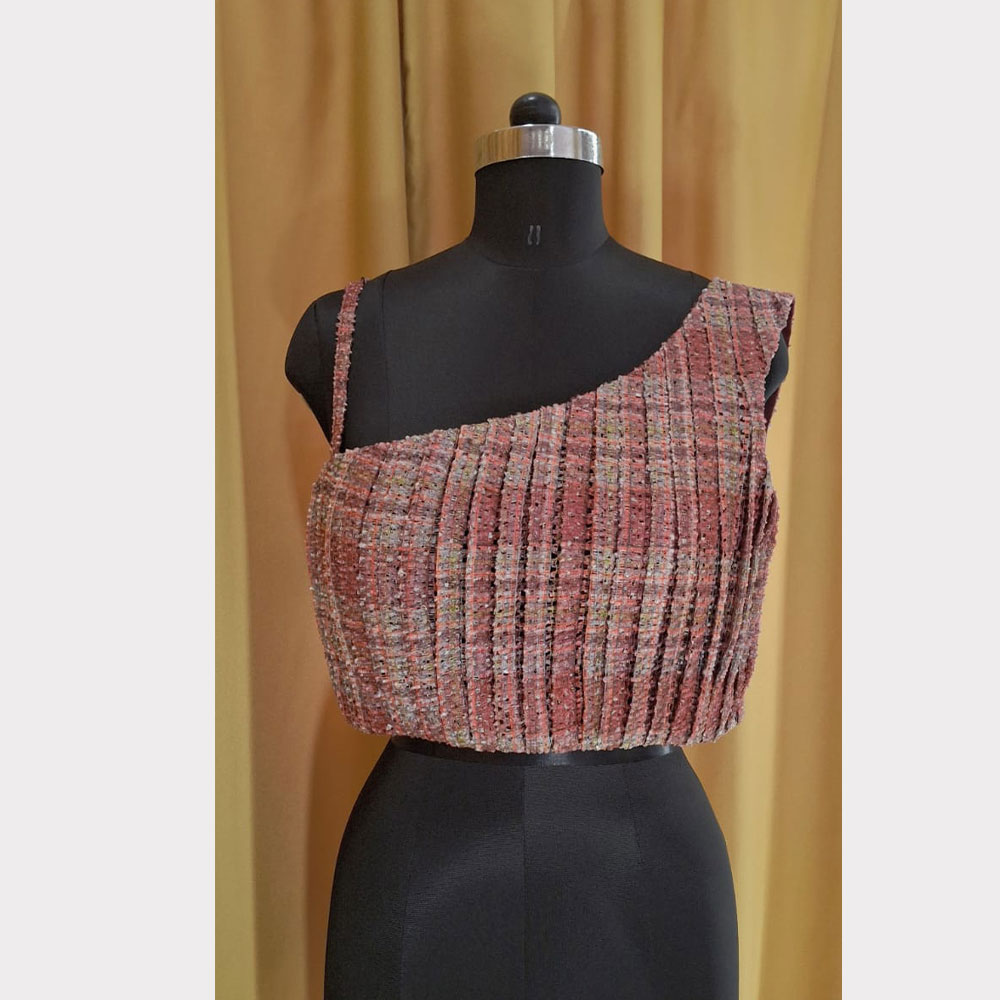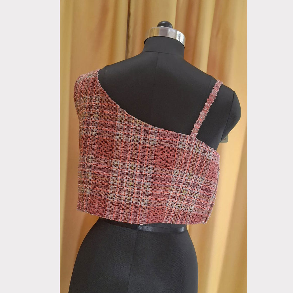 Brick Red Tweed Fabric Crop top